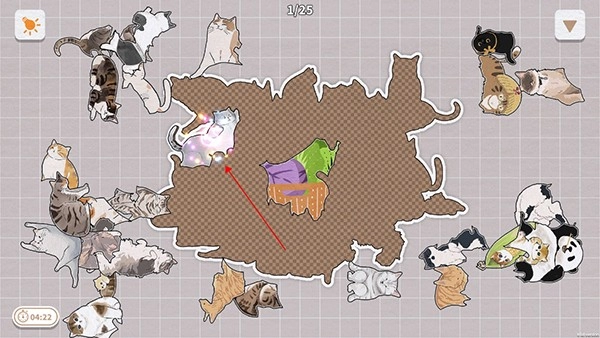 (1)拼图模式:在此模式下会给出完整的模型参考,玩家需依据每只猫猫的独特特征,把它们放置到相应的正确位置就可以了。
