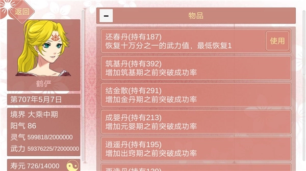 还春丹的使用时机很关键——当目标人物的当前武力值低于其自身武力上限时赠送,能获得相对更多的好感度提升。