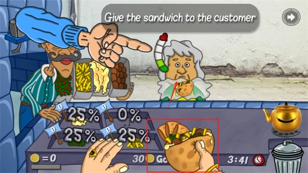 3、顾客的耐心是有限的,随着挑战难度提升,顾客数量会逐渐增加,需要及时制作出所有三明治,避免顾客耐心值下降。