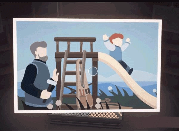 把立方体的另一面拼接好后,点击把手让卡车顺利通过桥梁,之后就能在地板下面找到那张照片了。