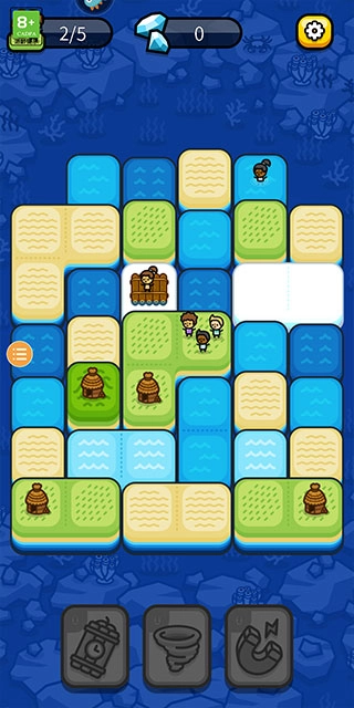 进入游戏后,先依据关卡提示解救对应数量的幸存者,接着通过滑动方块来合成陆地与避难所。