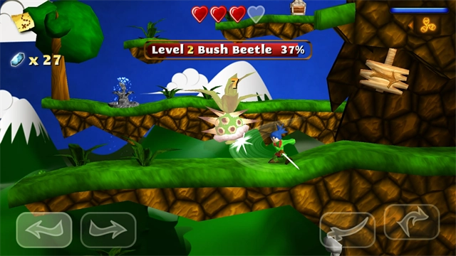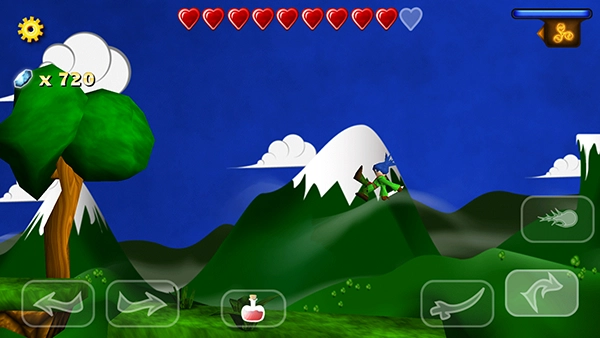 就像下图右下角呈现的那样,那个带有魔法弹样式的图标便是魔法攻击键,点击它就能发动魔法攻击。画面的右上方有一条魔法能量条,一旦蓝色的能量条数值变为0,玩家就没办法释放法术了。不过能量条会随着时间的推移自动补充能量,另外,玩家也能在游戏里拾取小蓝瓶来直接将能量条补满。