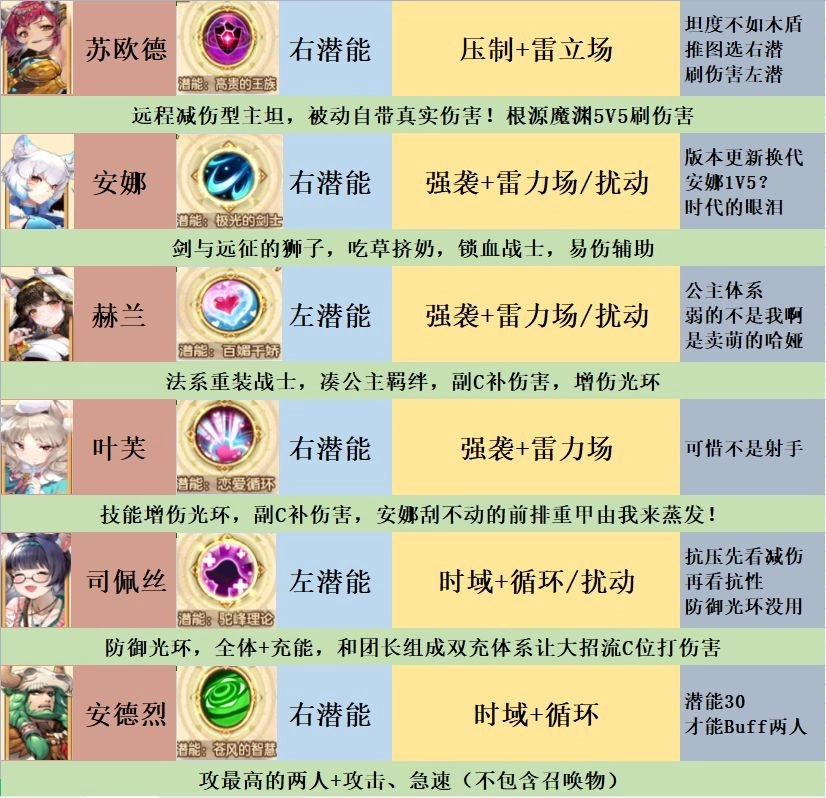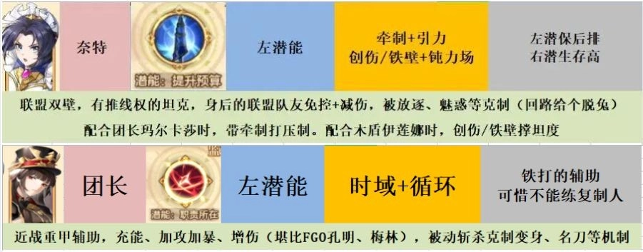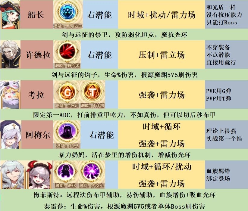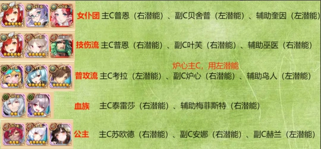 通过潜能类型,筛选出各阵营的强力输出