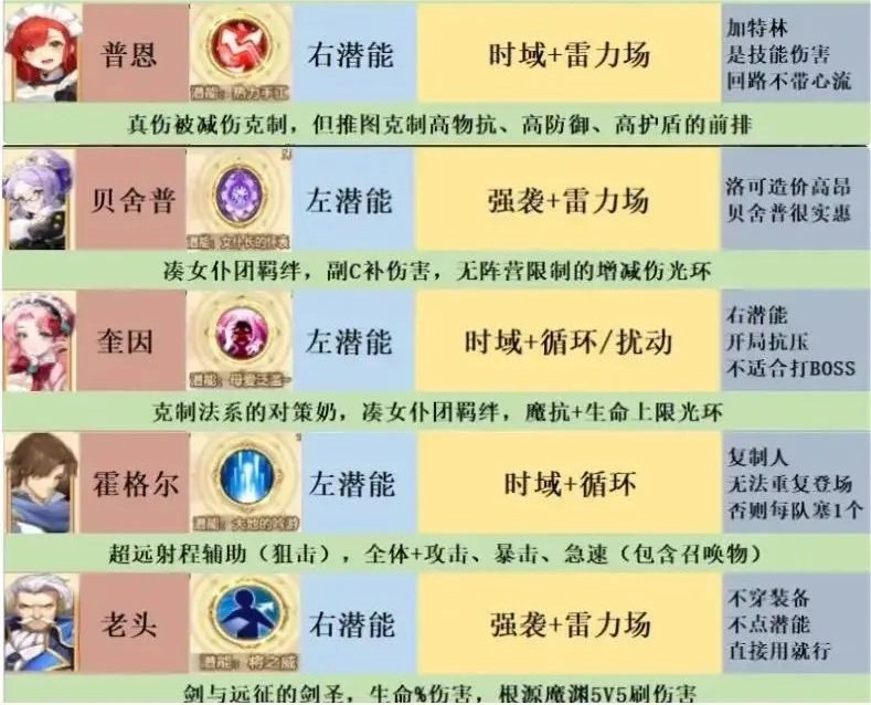 10各阵营值得培养的角色介绍