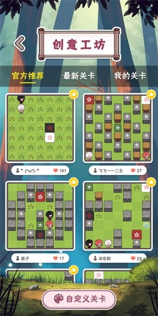 5、游戏还配备了创意工坊功能,在这里你能够自行设计关卡,既可以上传分享自己的作品,也能浏览推荐或其他玩家创作的内容。
