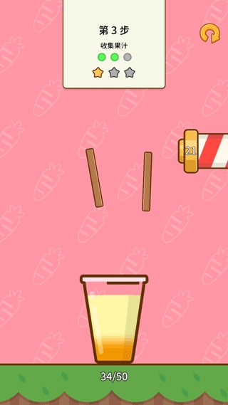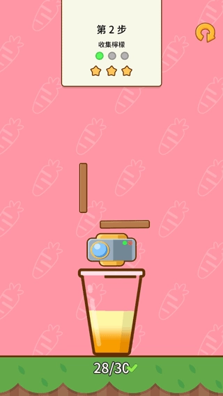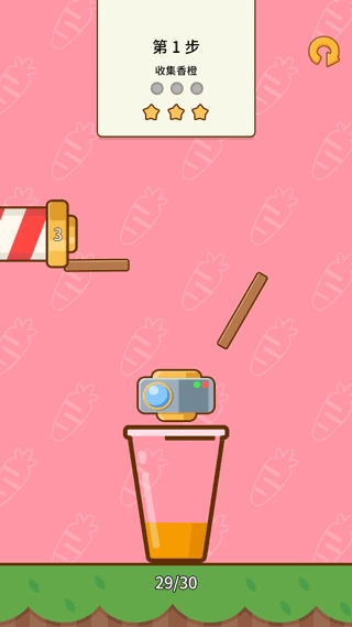 3、收集香橙,需要使香橙准确的进入到杯中