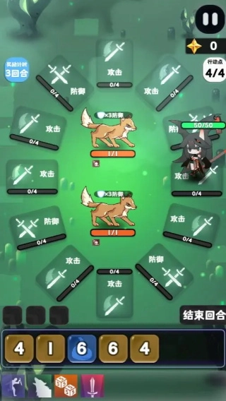 1. 每个回合都会获取行动点(初始数量为4点)与骰子(初始数量为5个),抽取骰子时会依照手中已有的骰子顺序来进行。