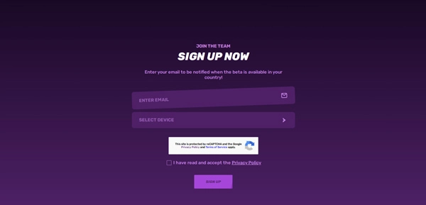 点击正中间的紫色按钮【SIGN UP FOR BETA】(注册测试)