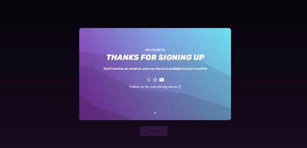 1、打开mo.co,点击左下角的“SIGN UP FOR BETA”选项;