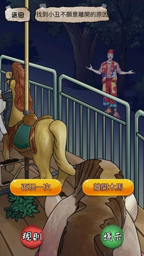 1)第一次坐完旋转木马后,把前面木马上贴着的照片拖给小丑